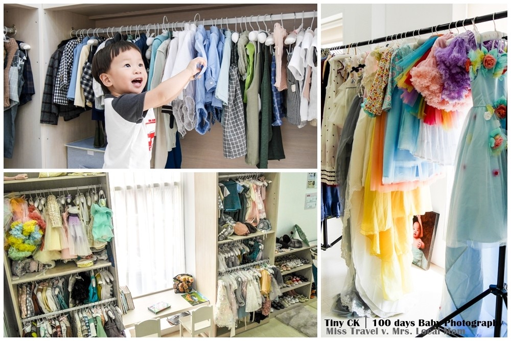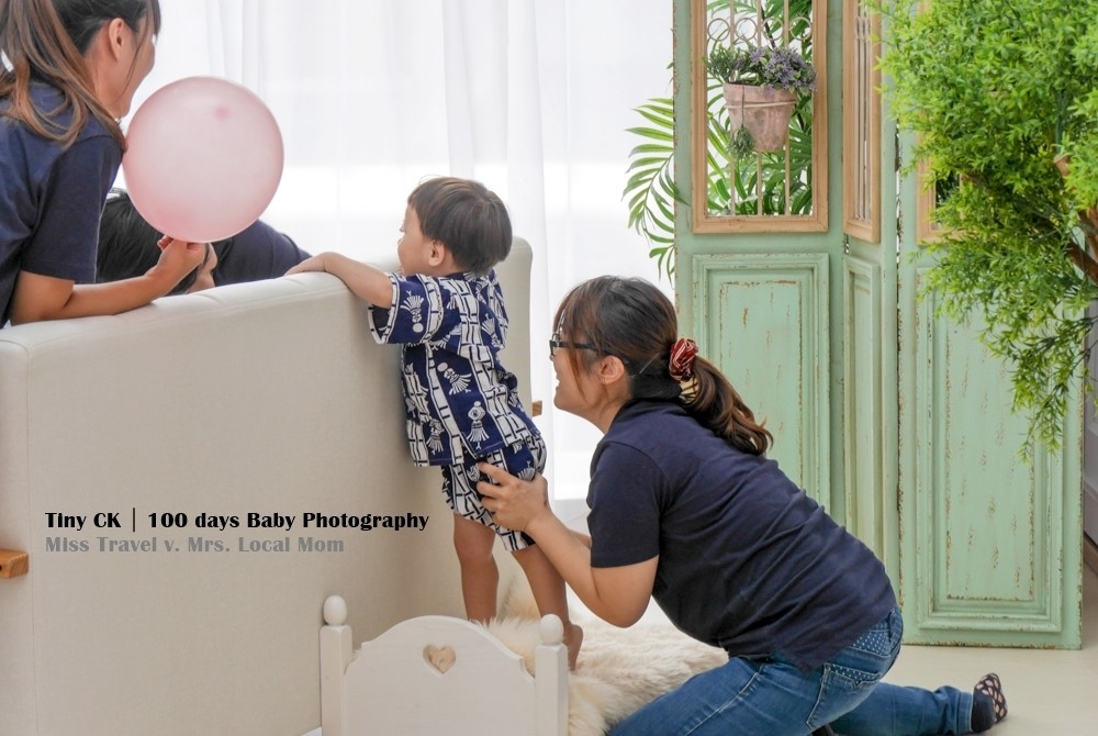 (寫了這麼多團隊表示終於輪到我們出場),打從一踏進小詩琦開始就是雪莉加上安撫師及門市顧問親切的指引我們一切流程,無論是決定服裝、協助更衣與換場景,或是有任何需求都第一時間協助我們,在拍照過程可以看出團隊分工合作的好默契,攝影師會負責取景構圖跟主導拍攝節奏,寶寶安撫師則用自然輕鬆的方式在玩樂中引導小人,1.5個小時不知不覺就過了,如果是錢櫃就馬上再加1小時啊(為娘真的很久沒去唱一下了)。