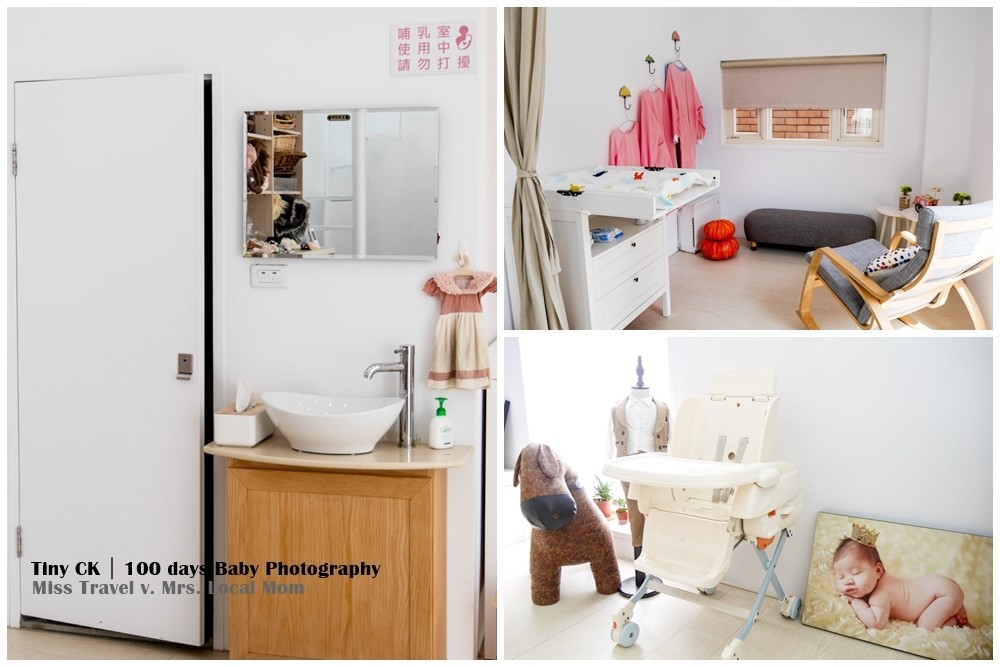 寶寶在拍攝期間難免有各種需求,泡奶粉有商用的開飲機,換尿布有專屬的尿布台,餵奶跟休息的空間居然這麼大,一瞬間以為回到月子中心那美好的時光(遠目)。