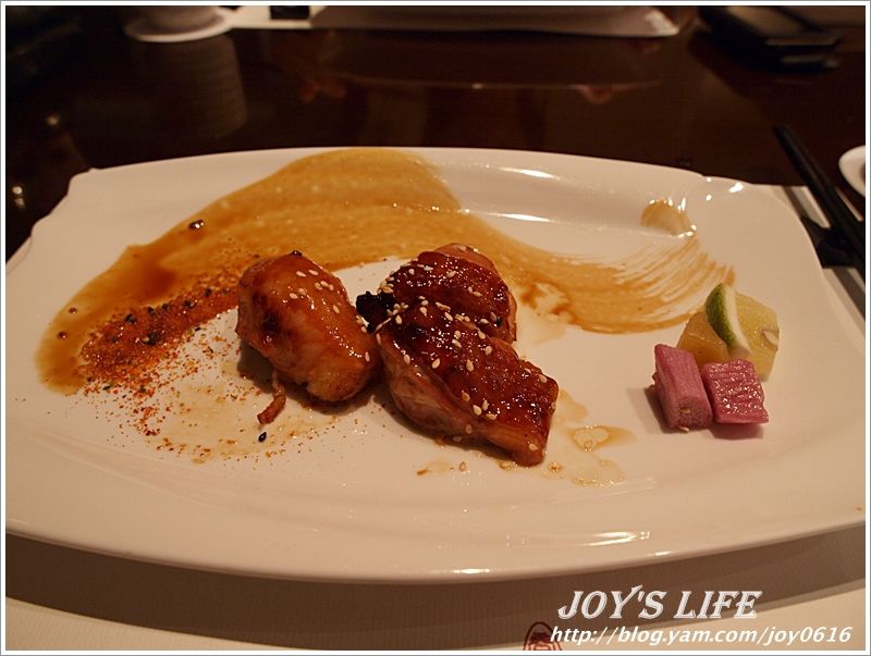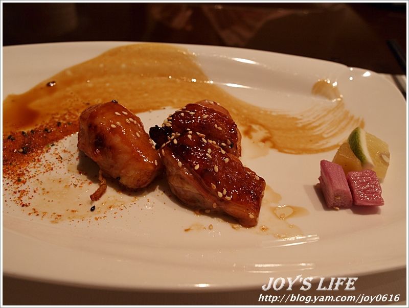 鮮嫩的腿肉 ,照燒醬汁不會過鹹甜,邊邊是醃製的山藥與鳳梨, 搭配著吃不會有膩口的感覺,盤邊有五味子粉可以沾取 , 帶點辣味更好吃。