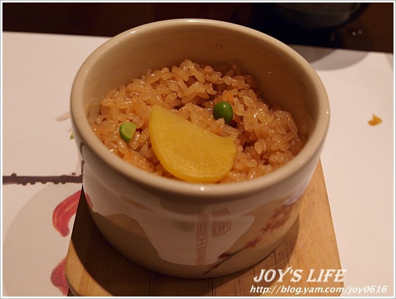 鮭魚弄成末狀配合淡色醬油下去炊煮,整個米粒都顏色均勻並充滿鮭魚味不會有油膩感,是個成功的好炊飯。