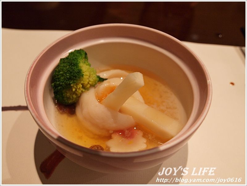 花椰菜、 鱈魚、 桂竹筍、 明太子、 鈕扣菇 、 麻吉喬裝的魚板,偏油的鱈魚搭配無味的湯汁 ,沒有特殊的味道,就單單食材原味的表現。