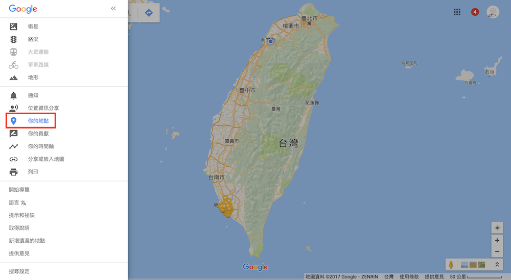 第一步 – 開啟 Google 地圖,點選左上角「選單」後再點選「你的地圖」