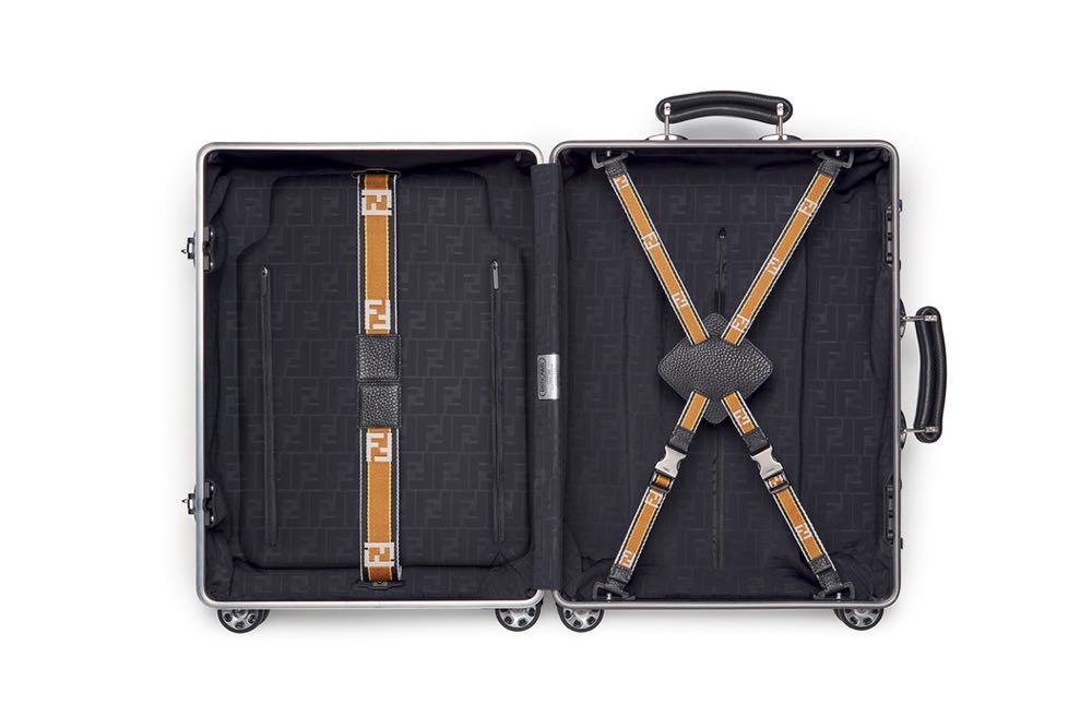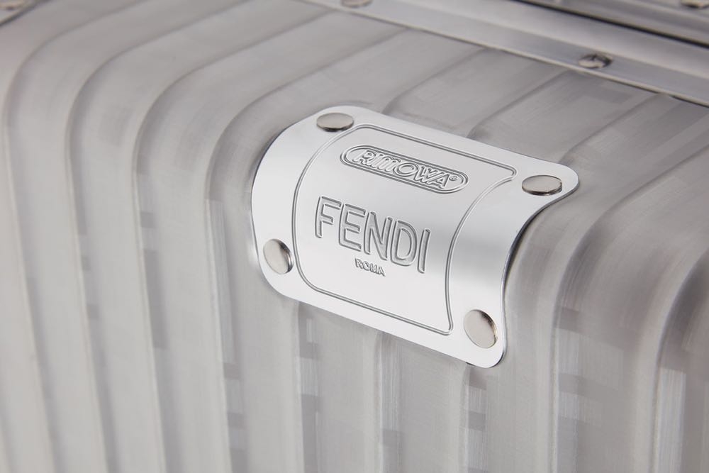 除了行李箱本體上的雙 FF 高辨識度 logo 以外,黑色內襯中同樣有著黑色同色系緹花 FF 標誌,再搭配 RIMOWA 知名的 Multiwheel 滾輪系統、專屬防塵套等都讓實用性絲毫不減。而這一款聯名行李箱也是 RIMOWA 為了慶祝鋁鎂合金系列行李箱八十周年所推出,就連箱身背後的金屬牌上刻還刻了 Fendi 與 RIMOWA 雙品牌 Logo 更顯特別。