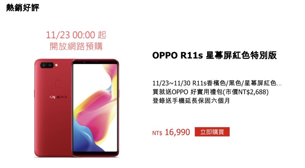 在上週宣布上市的 OPPO R11s 在官方授權網路購物平台第一週獲得了熱烈的迴響,其中星幕屏紅色特別版更創下 OPPO 網路商店上架兩小時售罄的驚人紀錄,OPPO R11s 今 (1) 日於五大電信與神腦國際門市正式開賣,並推出購機登錄抽「Hebe Xmas,與田馥甄的耶誕午茶約會」入場券活動,而頗受好評的「OPPO R11s 風格實驗室」也將於本周末移師高雄漢神巨蛋前廣場,邀請消費者一起打卡同樂慶祝新機正式上市!