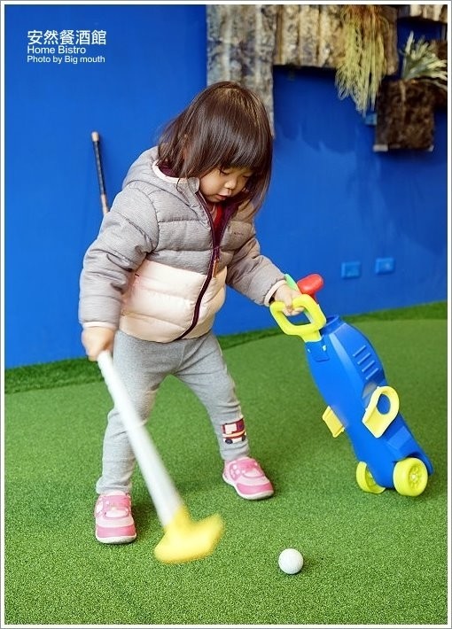 ▼不過三兩下,小口愛就自己找到高爾夫球的訣竅啦! 大小朋友都有球具可以玩喔!