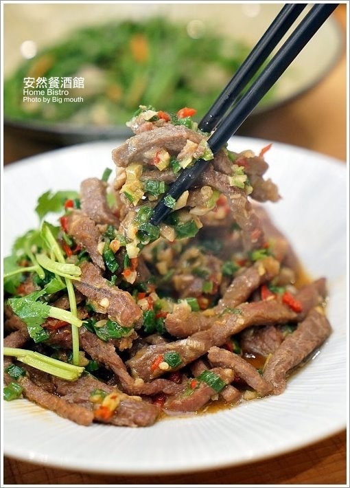 ▼剁椒牛肉,看起來有點像是蔥爆牛肉,但用剁椒取代大量的蔥花,讓口感更加特別!