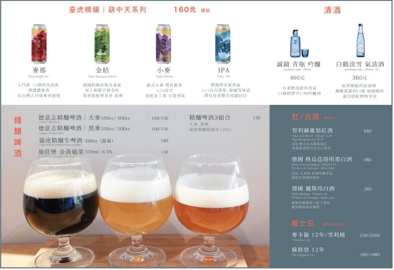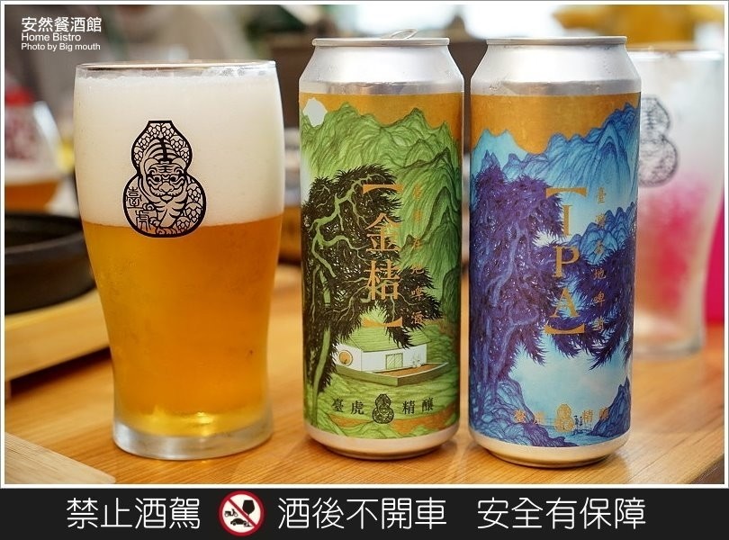 ▼喜愛臺虎精釀啤酒在這裡也能喝得到!臺虎精釀啤酒可是金馬獎指定品牌,系列酒標還特別請來知名藝術家姚瑞中操刀設計,以現代手法翻新山水畫,並以台灣為藍圖,搭配出不同的創意美感!金桔科隆,喝起來除了有金桔的果香之外,還帶有淡雅的麥芽甜味,清新爽口無苦韻,連女孩兒都喜歡!IPA,入口後就有百香果、柑橘等果香,還有隱約的花香味,微苦回甘的味蕾讓人著迷!