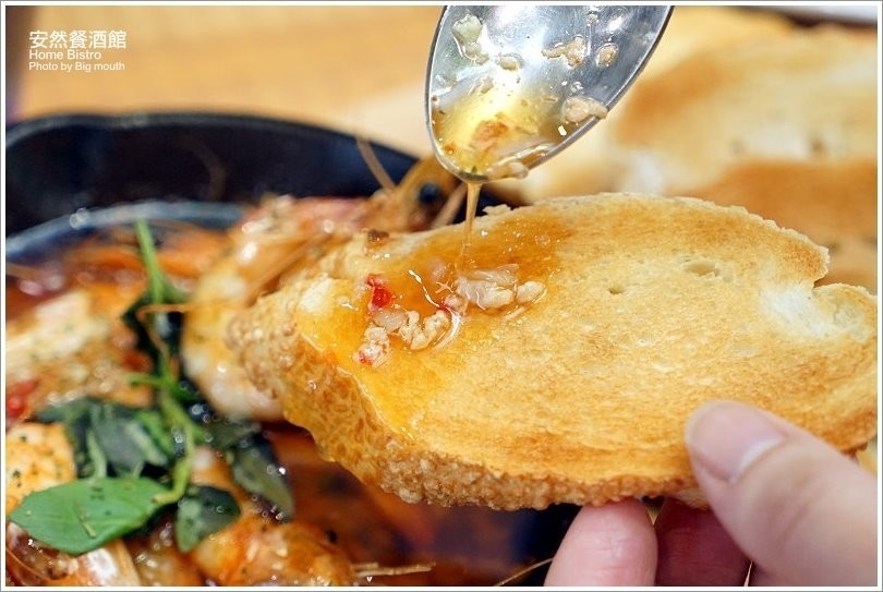 ▼ 吃起來不僅帶有蒜香,還有濃郁的蝦味香氣, 搭配微酥軟Q、帶有嚼感的法式麵包,香氣十足,讓人忍不住一口接一口!