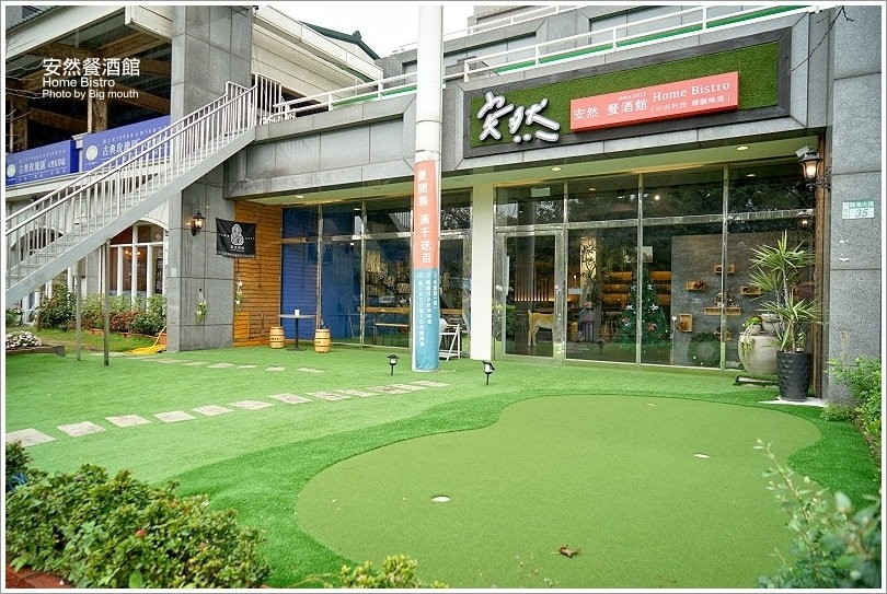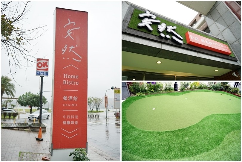 ▼安然餐酒館就位於觀海大道的轉角處,開車前往或從淡水搭渡輪過來都很方便,若是從淡水搭渡輪抵達八里渡船頭後,步行約莫十分鐘即可抵達,餐廳前就是一大片人工草皮,小朋友可以在這裡奔跑玩耍,室內也有休閒的高爾夫器具可以使用。