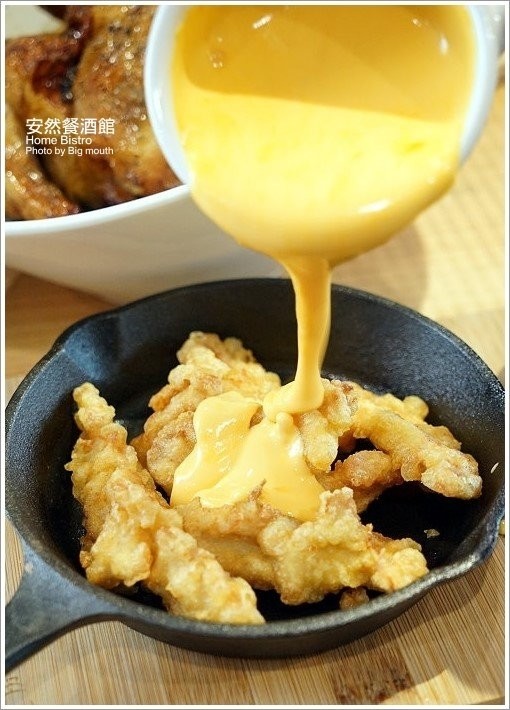 ▼唐揚雞塊(附巧達起司), 將加熱的巧達起司淋上現炸雞塊,看起來超邪惡的啦!