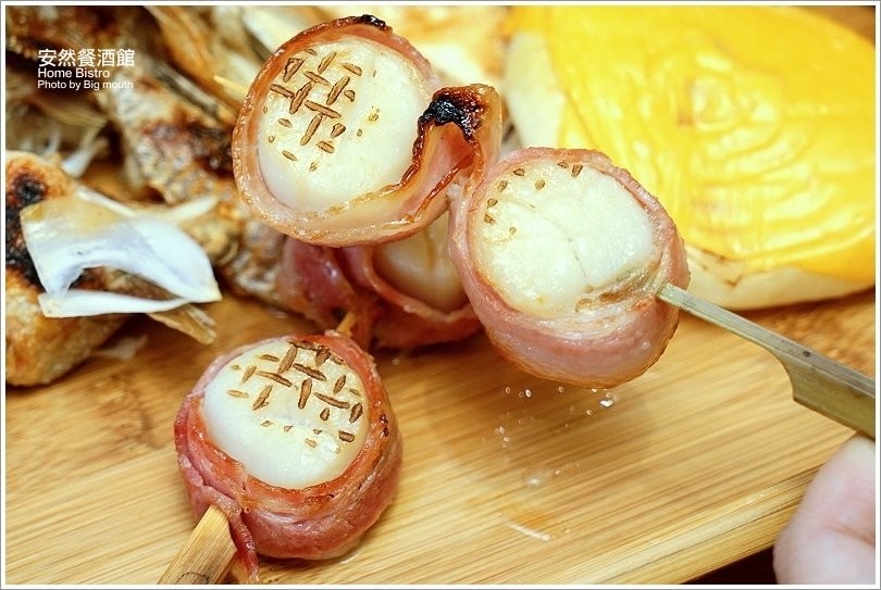 ▼干貝使用的是北海道生食級干貝,炙烤後外頭再裹上一層培根, 一口咬下,不僅能吃到干貝的鮮嫩甘甜, 搭配微微鹹香的培根更是提味好吃!