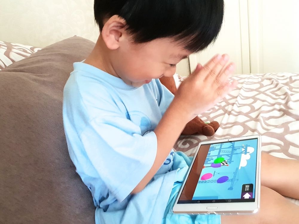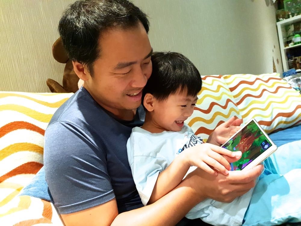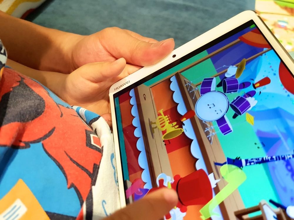 當有了一大一小的 2K 解析度、harman kardon 調校揚聲器的平板後,我們到底能做什麼!? 看劇?玩遊戲?上網?看球賽?其實通通都太適合!對家裡有小孩的父母來說,相信都知道看平板並不是不行,而是我們要如何滿足使用不傷小孩眼睛的平板、適合小孩操作的 app、以及與小孩達成使用時間的共識這三個條件才是關鍵。因此這次 M5 的 8.4 吋版本大小,剛好適合 3 歲多正在拼命吸取知識好奇心旺盛的小孩。