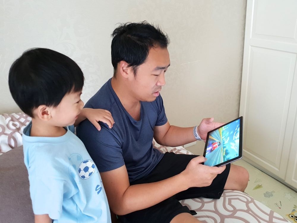 至於 10.8 吋的平板則變成了爸爸的心頭好!因為有著 2K 解析度螢幕和 4 顆 harman kardon 揚聲器,再加上 Kirin 960 八核心所帶來的應用程式流暢度,因此是看 NBA 球賽、玩賽車遊戲等,對熱血的爸爸來說的確是相當的過癮!