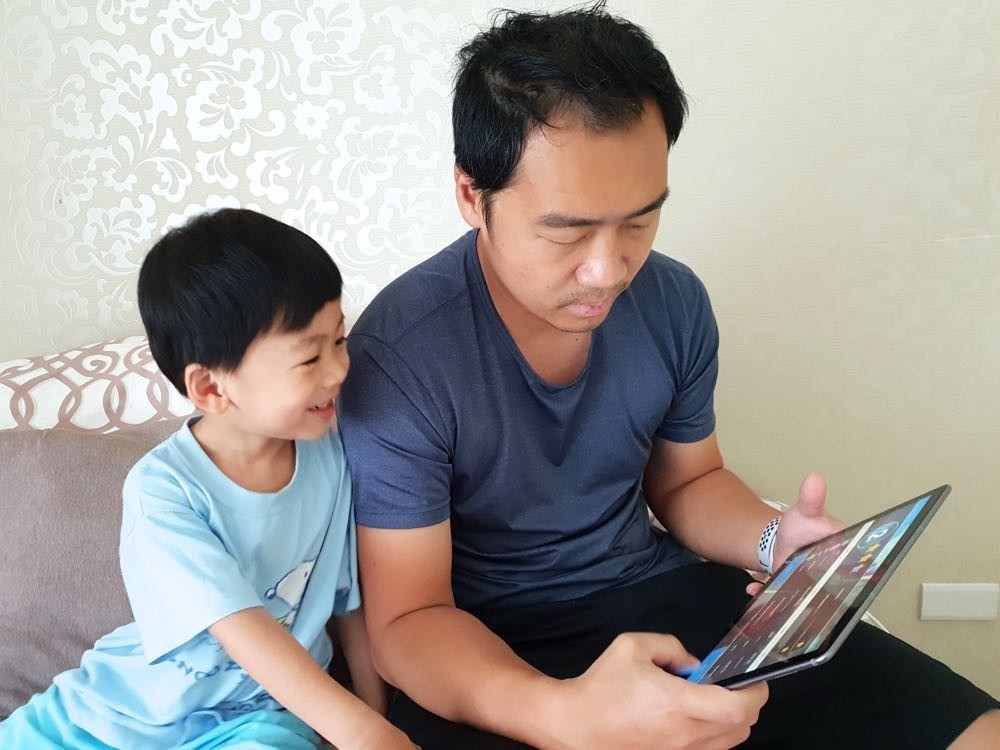 這次體驗後我們發現不管是自己握,還是躺在爸爸懷裡一起使用,316g 輕巧重量、精準觸控反應與清晰明確的聲音,都能讓小孩和家人從遊戲中獲得學習與難得的親子時光回憶!