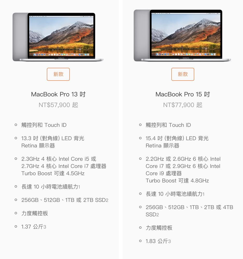 就在剛剛台灣 Apple 官網正式放出 MacBook Pro 2018 開賣消息,13 吋與 15 吋的 MacBook 版本售價分別從 NT$57,900 元與 NT$77,900 元起,預計 8 月 29-31 日開始出貨!