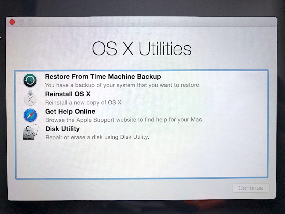 進入 macOS 的工具程式後,請先點擊最下方的「Disk Utility」進行磁碟清除與分割的動作,完成後再點選第二個「Reinstall OS X」選項,開始最新版 macOS 的下載與安裝流程。特別注意的是,由於網路下載 macOS 的程序會自動判斷最符合該電腦出廠時的系統版本,所以可能會下載到較舊版本的 macOS,待安裝完成後則可以透過 App Store 自動升級成最新版本。