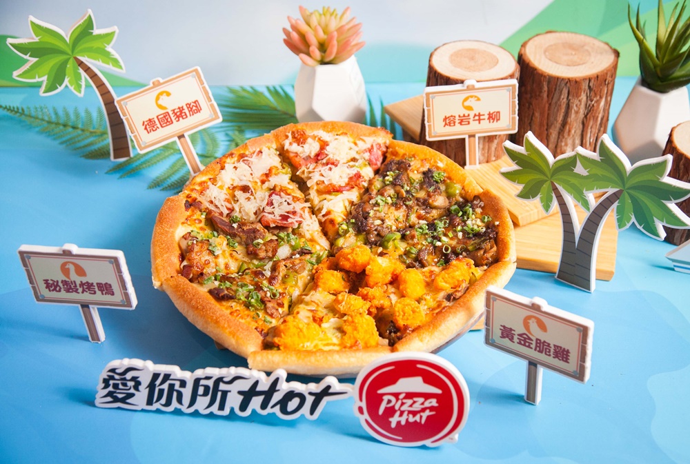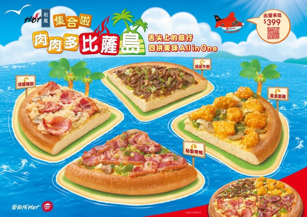 從日系遊戲獲得靈感,「必勝客HOT和風系列」結合夏日、比薩、島嶼概念,從想要滿足廣大的「嗜肉族」出發,首次打造超值四拼美味肉肉大集合比薩,綜合超高CP值及霸氣肉類食材兩大特點,讓好友歡聚時能各自分食喜愛的口味、自己獨享也能一次爽吃四種不同比薩。