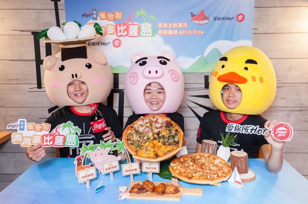 必勝客大口吃肉系列又來啦!不能出國就讓味蕾代替你旅行,集德國豬腳、秘製烤鴨、熔岩牛柳、酥脆黃金雞,四種深獲消費者喜愛的肉肉比薩,一盒之間就有異國旅行的風情,全新必勝客「集合啦肉肉多比薩島」單點一個大比薩只要399元,7/28起限時限量開賣。