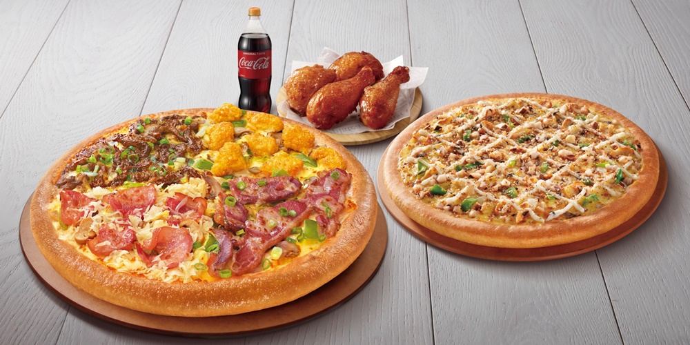 集合啦!歡樂齊聚「集合啦肉肉多比薩島」,四款口味各具異國情調,「德國豬腳」以軟嫩豬腳切片佐以德國酸菜、「秘製烤鴨」鋪滿肥美多汁的蒜香鴨胸肉片,烘烤出令人著迷的清爽美味、「熔岩牛柳」鮮嫩紐西蘭牛肉淋上黑胡椒醬、「黃金脆雞」外皮金黃,內層鮮嫩的香酥雞塊,四種口味一次滿足,搭配最經典的鬆厚餅皮,一起環遊驚喜連連的比薩島。