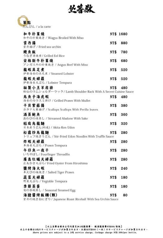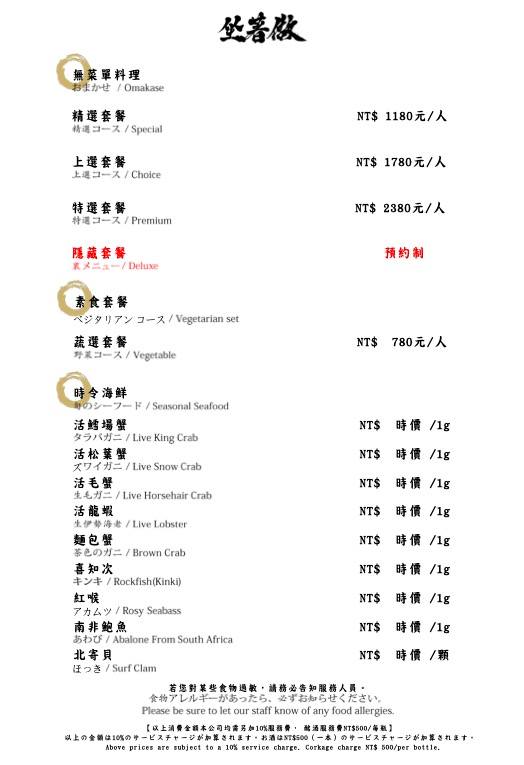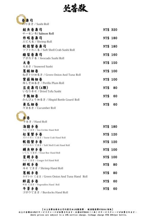 ▼坐著做日本料理菜單,餐點選擇還不少,提供給大家參考!