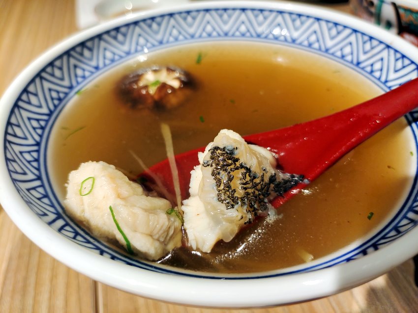 ▼石斑魚清湯,肉質緊實香Q,鮮美又帶有膠質口感,搭配薑香清甜的湯頭很可以!