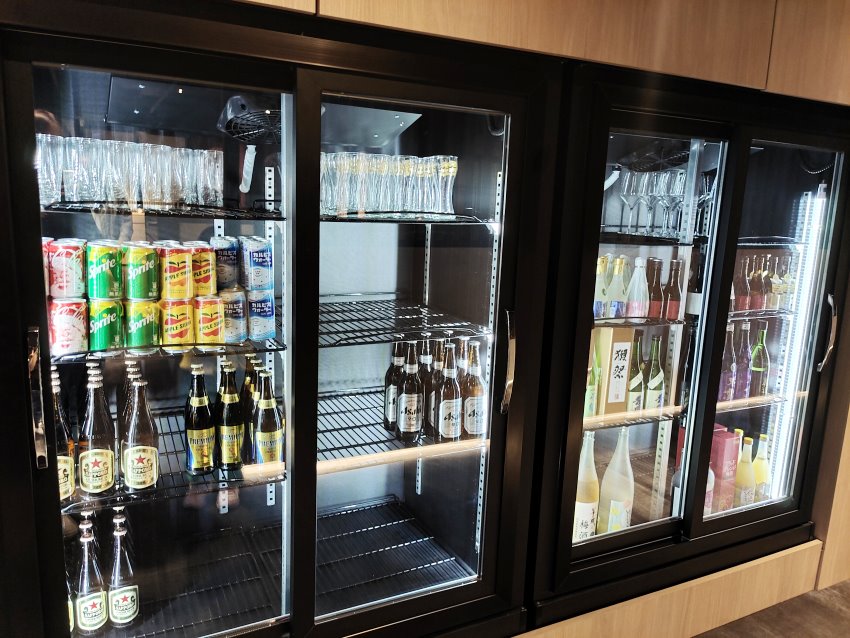 ▼這裡也有酒櫃,提供各式各樣的日本清酒、啤酒、水果酒、無酒精飲品等,有需要的朋友都可以點來搭餐享用!