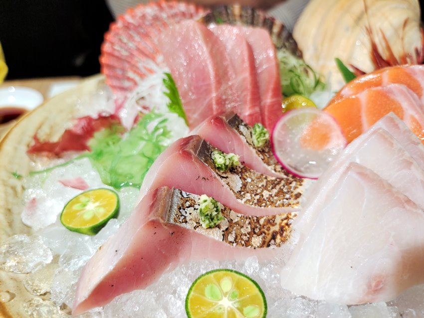 ▼因為這次是帶口咩家人一起來享用,所以我們選擇單點的方式,就能吃到自己想吃的餐點啦!首先上桌的是季節生魚片盛合,因為是採用季節漁獲的關係,所以每次吃到的生魚種類不見得一樣唷~~看起來非常澎湃,裡頭有鮭魚、海鱺、鰹魚、鮪魚、牡丹蝦等,光看就讓人口水直流啊~~