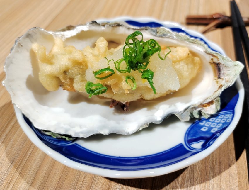 ▼廣島牡蠣個頭還不小,一顆就佔據一整個盤子啦~~吃起來外酥內嫩,肥美多汁又無腥味,上頭的蘿蔔泥增添不少清爽口感,喜愛牡蠣的朋友必吃!