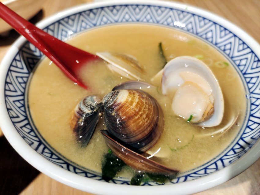 ▼味噌蛤蜊湯,蛤蜊個頭還不小,肥美鮮嫩加上甘甜的味噌香氣,順口又好喝!