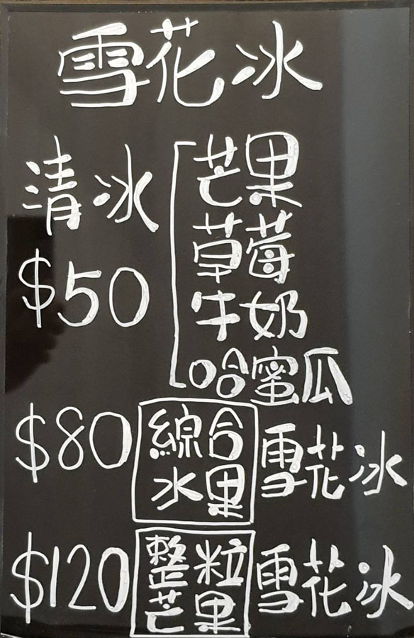 雪花冰有四種口味:芒果、草莓、哈密瓜、牛奶