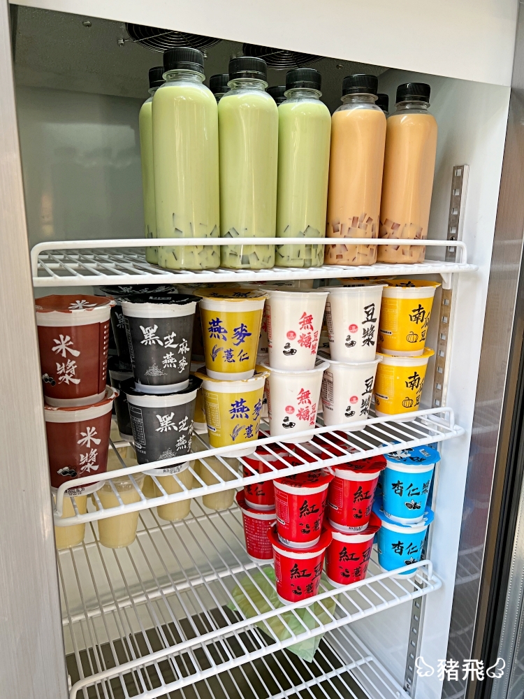 天氣實在太熱,等餐的同時先拿冰箱內的飲料解渴,有泰式綠奶茶、泰式奶茶、綠豆漿、芝麻漿、米漿、南瓜漿…,用來搭配法國麵包就是營養的一餐了。