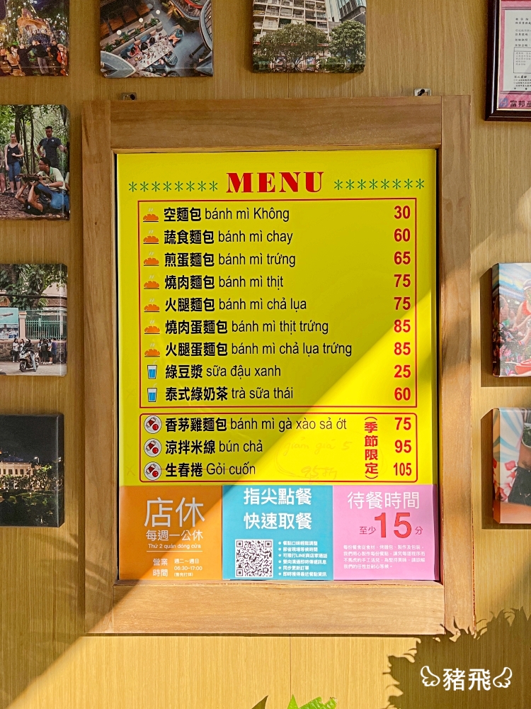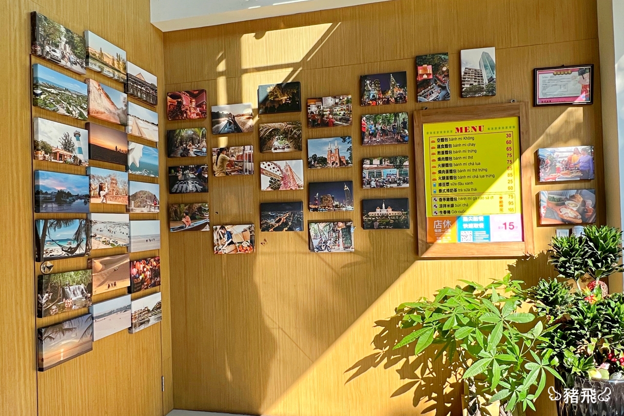 原來老闆可是個越南旅遊專家,在開店之前長時間待在越南,門口牆面上的照片就是經年累月的攝影作品,豬飛沒去過越南,光是看照片就好想要安排個假期前往啊!因為對越南的喜愛,不只用相機記錄越南的景色,也把做具代表性的越南料理-法國麵包,帶回台灣跟大家分享。