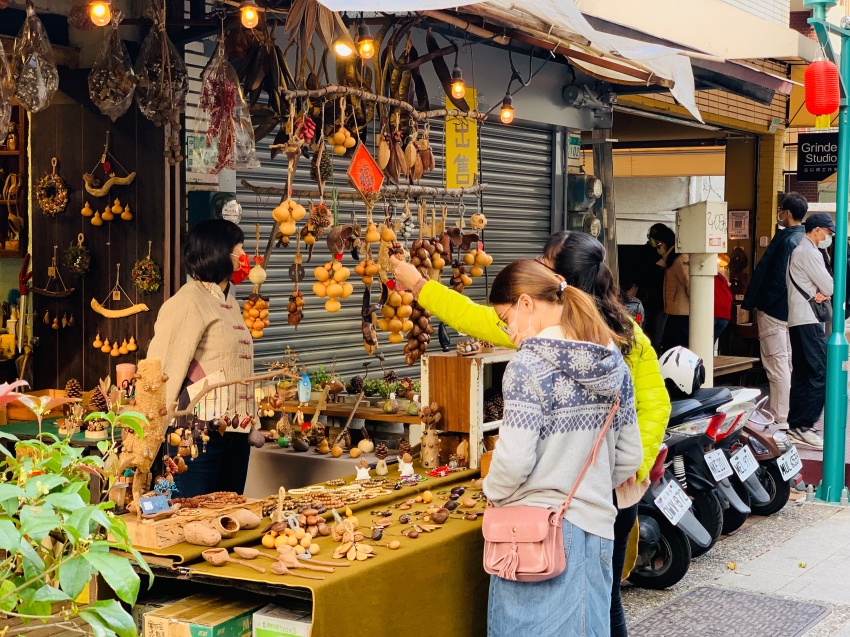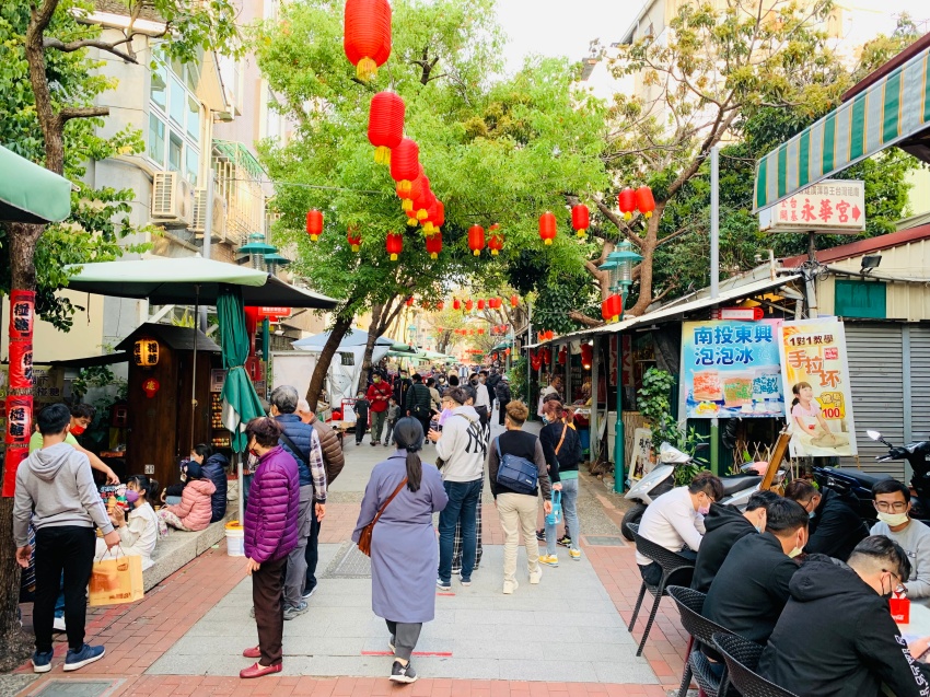 台南府中街就在台南一級古蹟孔廟對面,又稱為孔廟魅力商圈,平常日街上的店家一樣會開,但週末假日才有熱鬧的市集,可以買到各種手工藝創作、文創商品,還可以吃到像是保哥炒泡麵、二元黑輪、芋頭冰等台南特色小吃,逛起來蠻有意思。