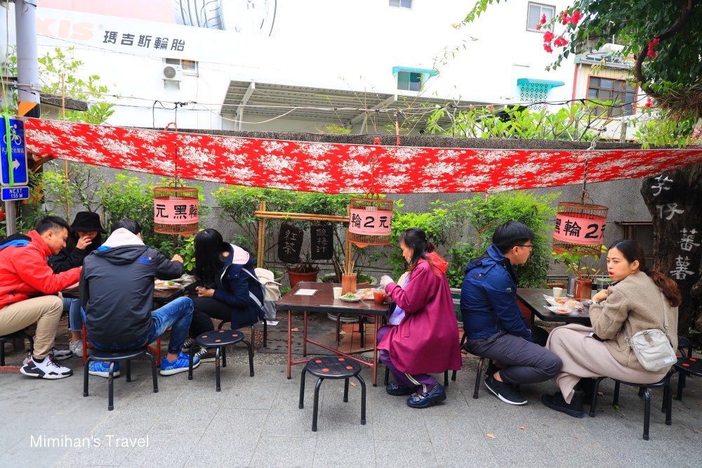 走到了府中街尾的「黑輪2元」也是孔廟商圈這裡蠻熱門的特色美食,每支黑輪、關東煮都是賣2元5元,這幾年來好像都沒漲價,隨意點個幾串,坐在路旁的小板凳上吃,也是挺不錯的體驗,好不好當然是吃見仁見智,不過挺好玩的。