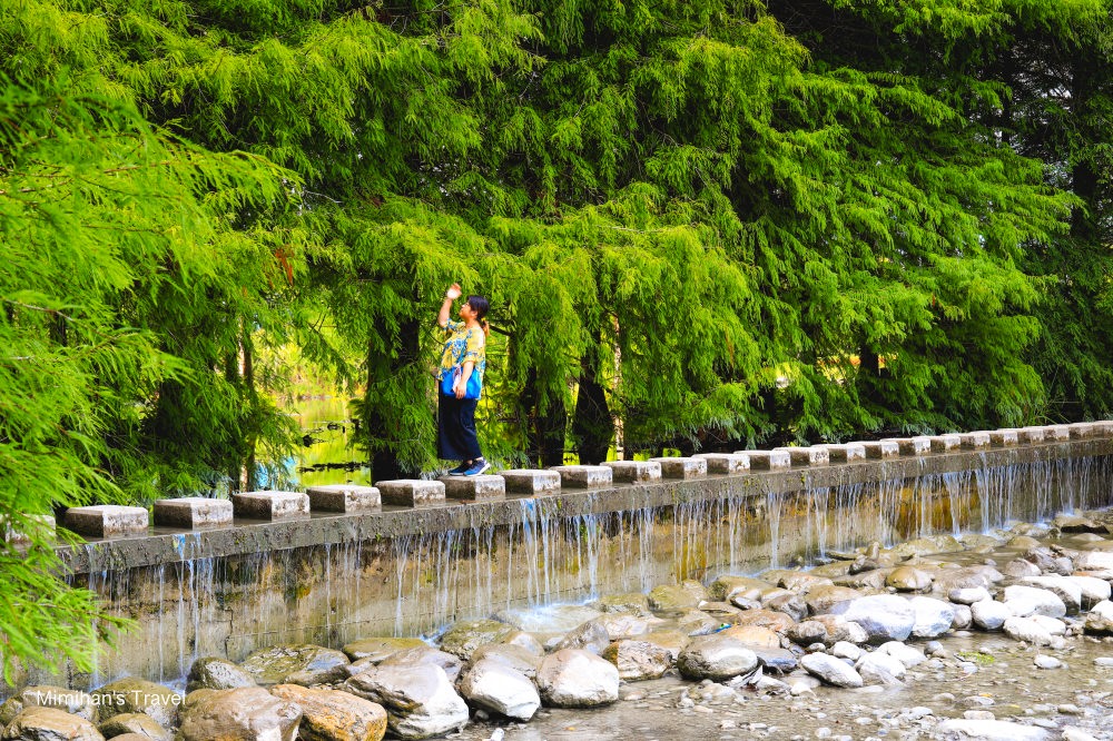 這條躲在落羽松秘境中的「跳石」是雲山水最熱門的拍照景點,就像一條排列整齊的豆腐般往對岸延伸,想要拍照的話,走過跳石步道時記得注意腳步唷!然後因為上面沒辦法並肩交會,所以如果遇到人多時就只能多多互相禮讓囉~