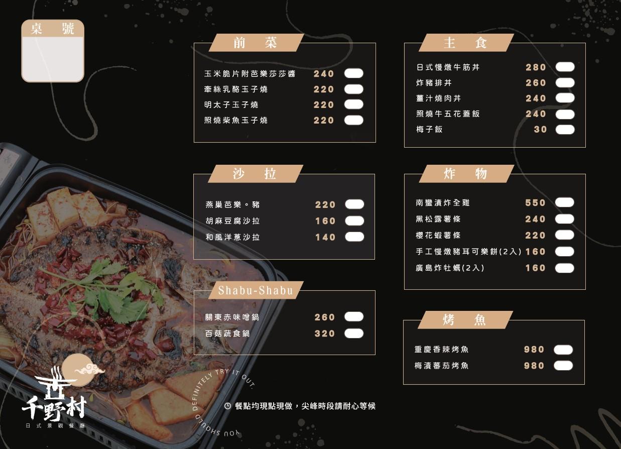 ▲以上為千野村日式景觀餐廳的菜單,大家可以參考喔,因為還在試營運調整期間,詳情可參考:https://senyavillage.com/。
