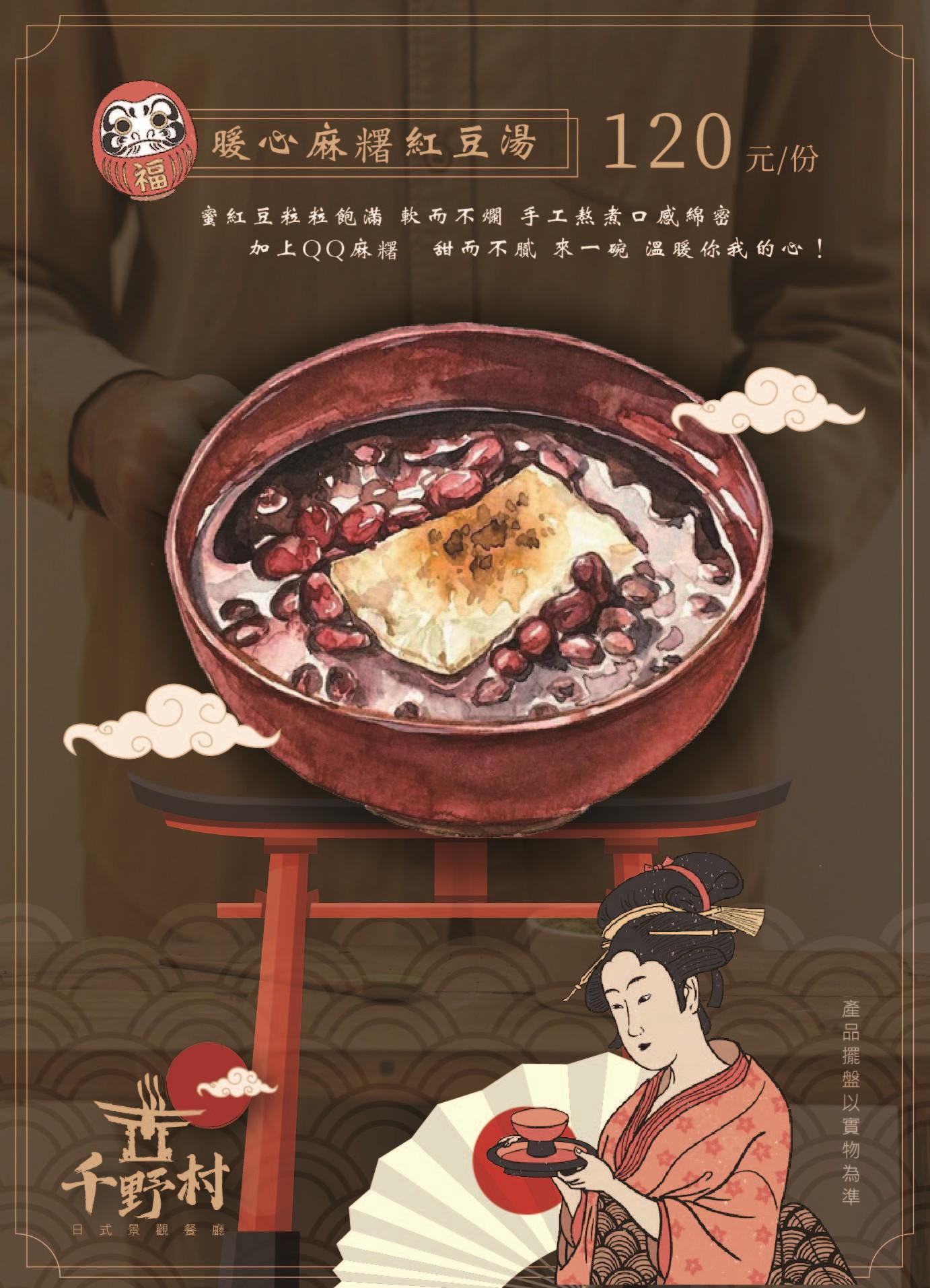 ▲千野村門票為200元,可折抵園區50元消費,紅豆湯、紅豆抹茶蕨餅、日式花見糰子等可加價兌換。
