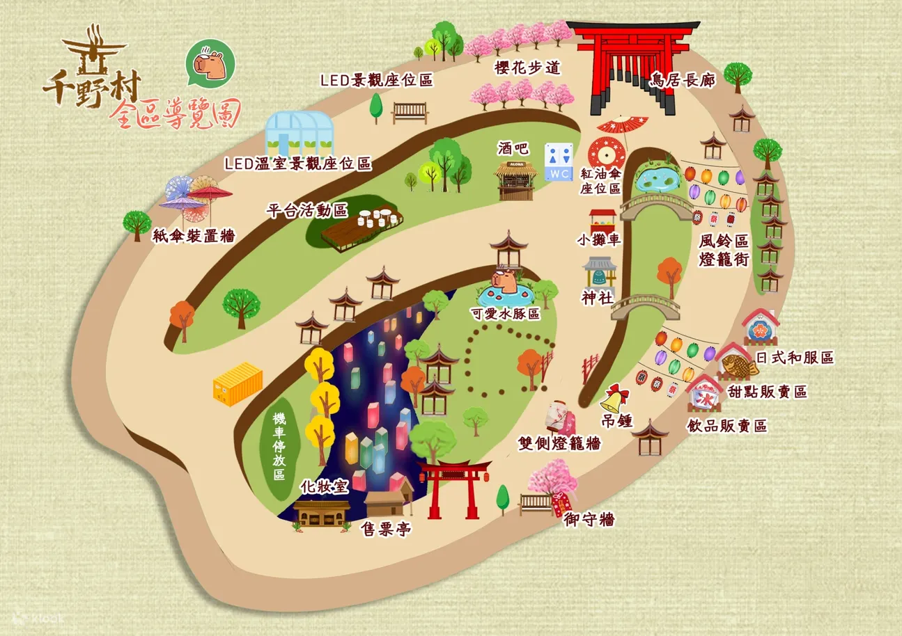 ▲千野村園區地圖!推薦可到Klook線上買門票更優惠!