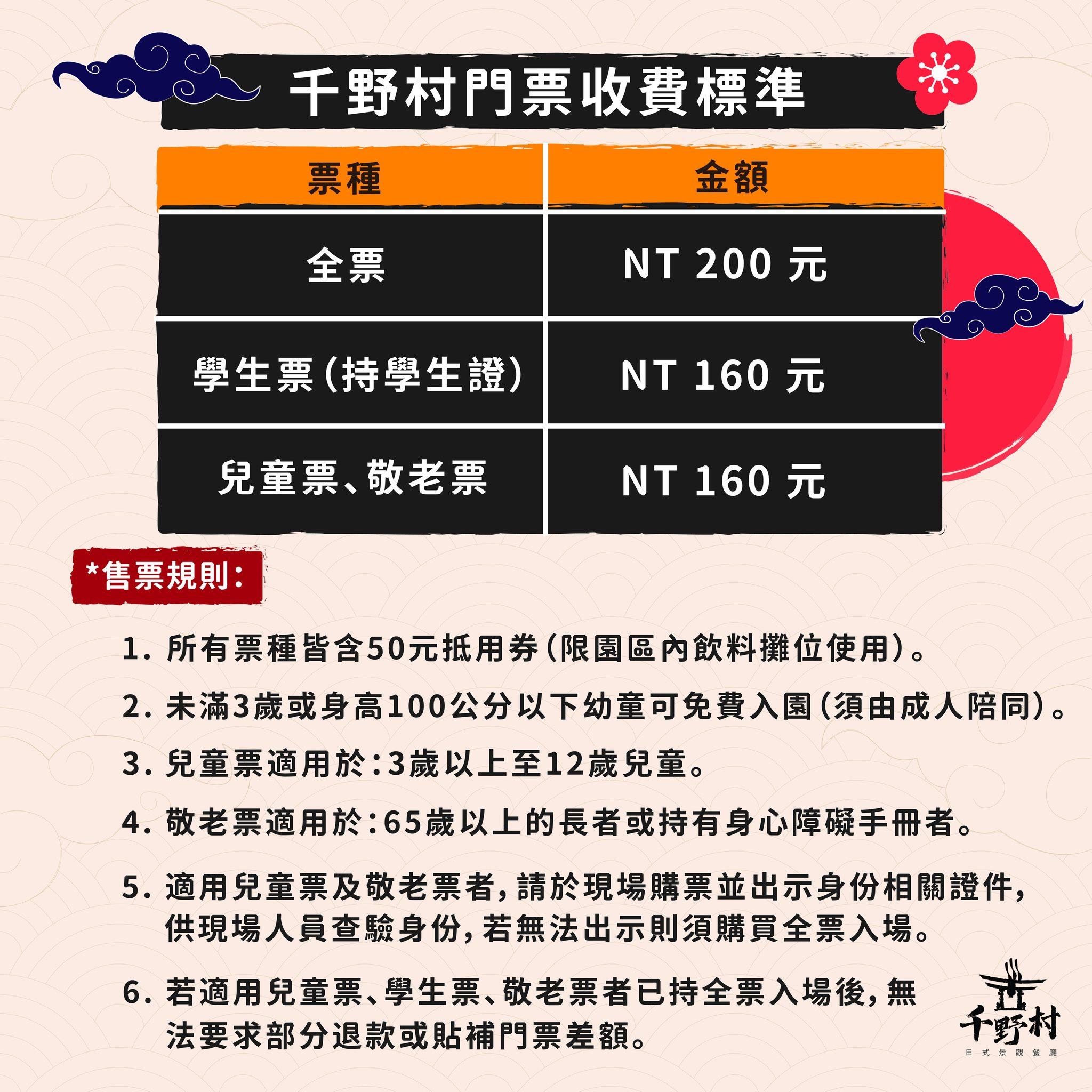 ▲千野村門票詳情,全票200元,可折抵50元消費。Klook線上買門票更優惠