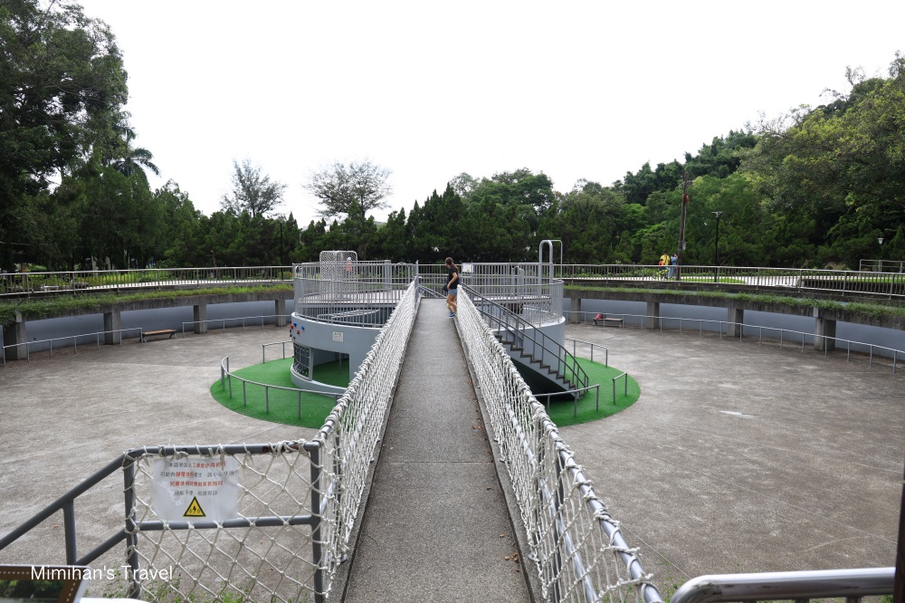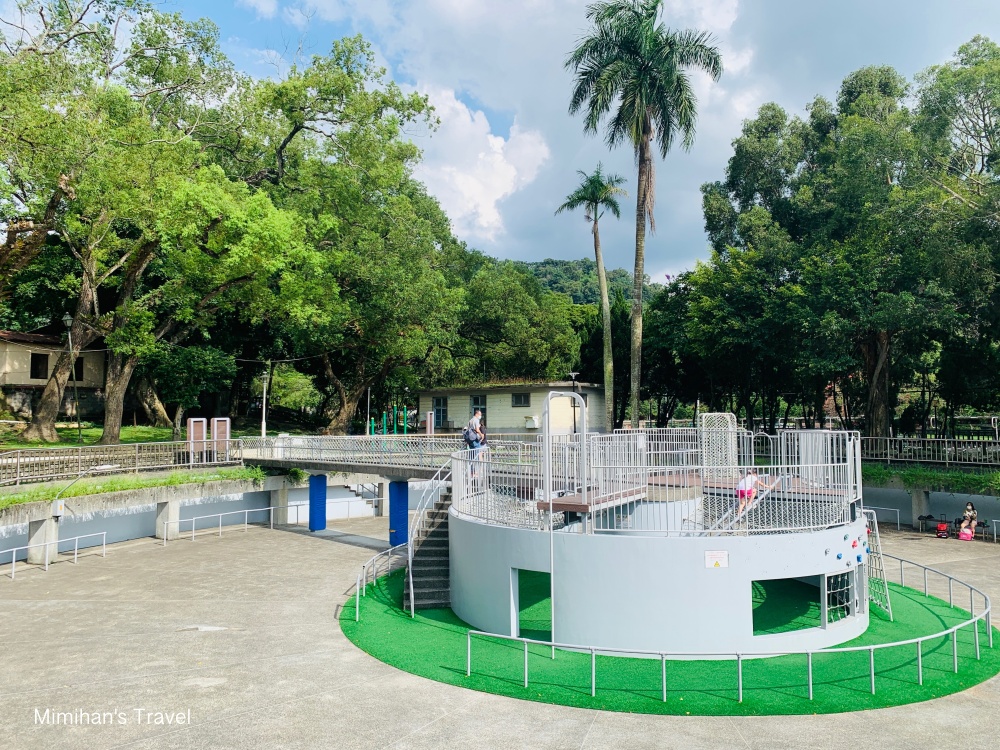 繼續往裡面走,竟然還有這座很大的攀爬遊戲區,之前在日治時期是澄泥池、後來變成溜冰場;如今整個都變成攀爬遊戲區,主要是希望給12歲以上的青少年可以練習類似跑酷或滑板之類的戶外活動。