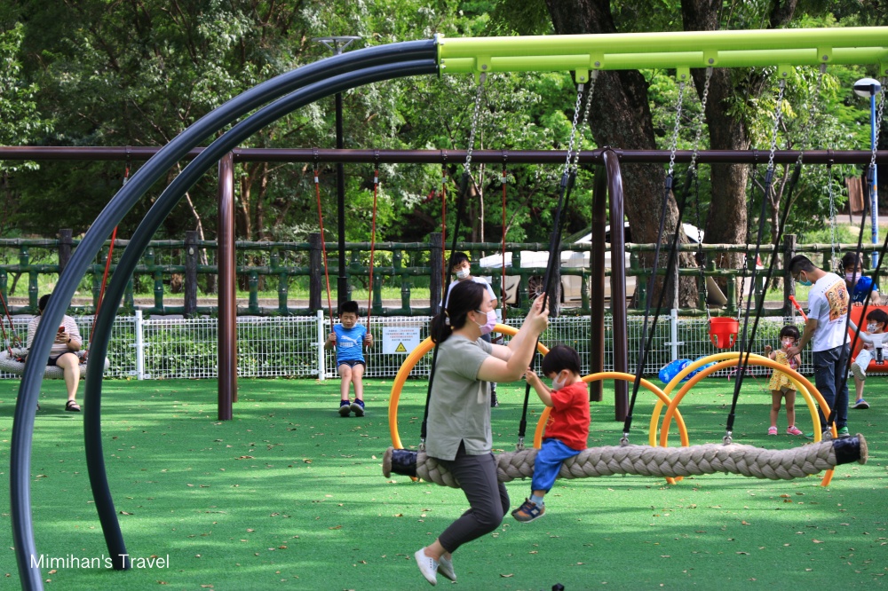 原本的兒童遊樂區變成寬敞乾淨的多功能鞦韆區,有鳥巢式搖籃、幼兒鞦韆、大繩索鞦韆等好幾種不同的鞦韆,從5~12歲都能找到喜歡的玩法,人多的時候還能順道教孩子排隊和禮讓的品德。