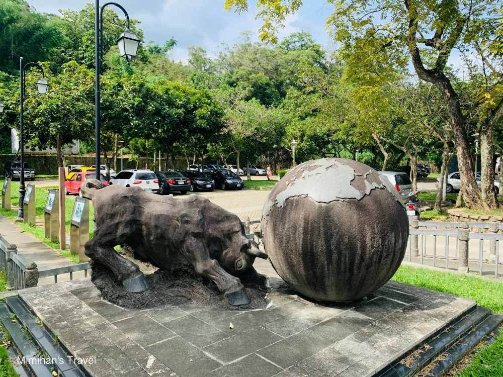 停車場旁有個921地震紀念區,放置了921地震的歷史照片,還有一座象徵著地牛翻身的裝置藝術。