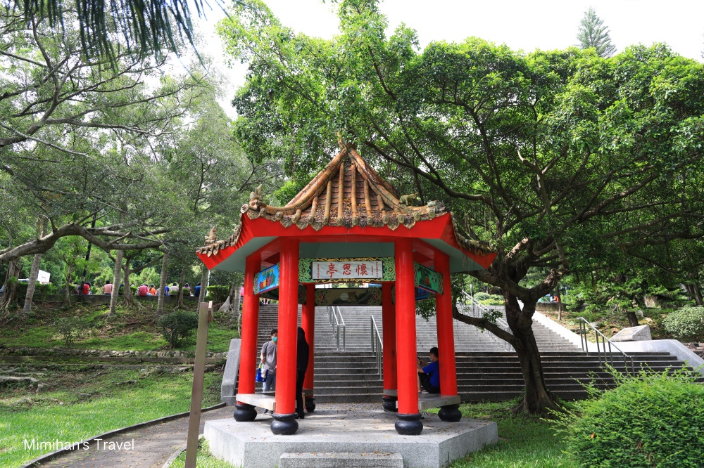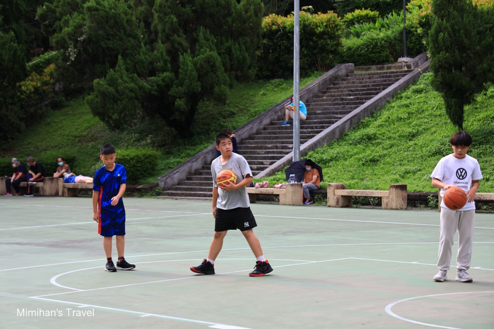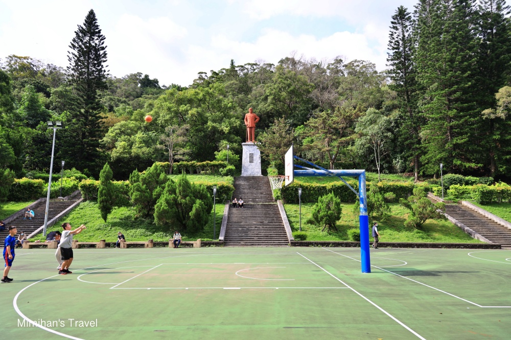 經過懷思亭,往後面的樓梯走上去是整個很寬敞的籃球場,有好幾個籃框看是想要打鬥牛或整場都沒問題,是大家運動練身手的好地方,還有蔣介石總痛的銅像在觀賽。