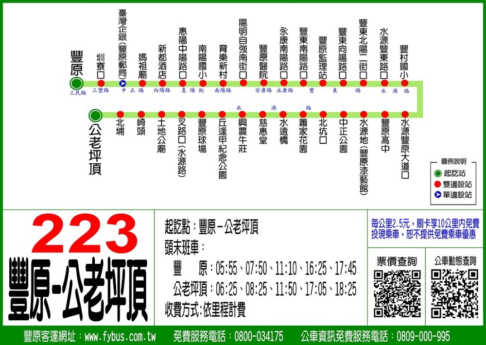 大眾交通則可從豐原市區搭豐原客運「223 豐原-公老坪頂」線於「中正公園」下車即可抵達公園。