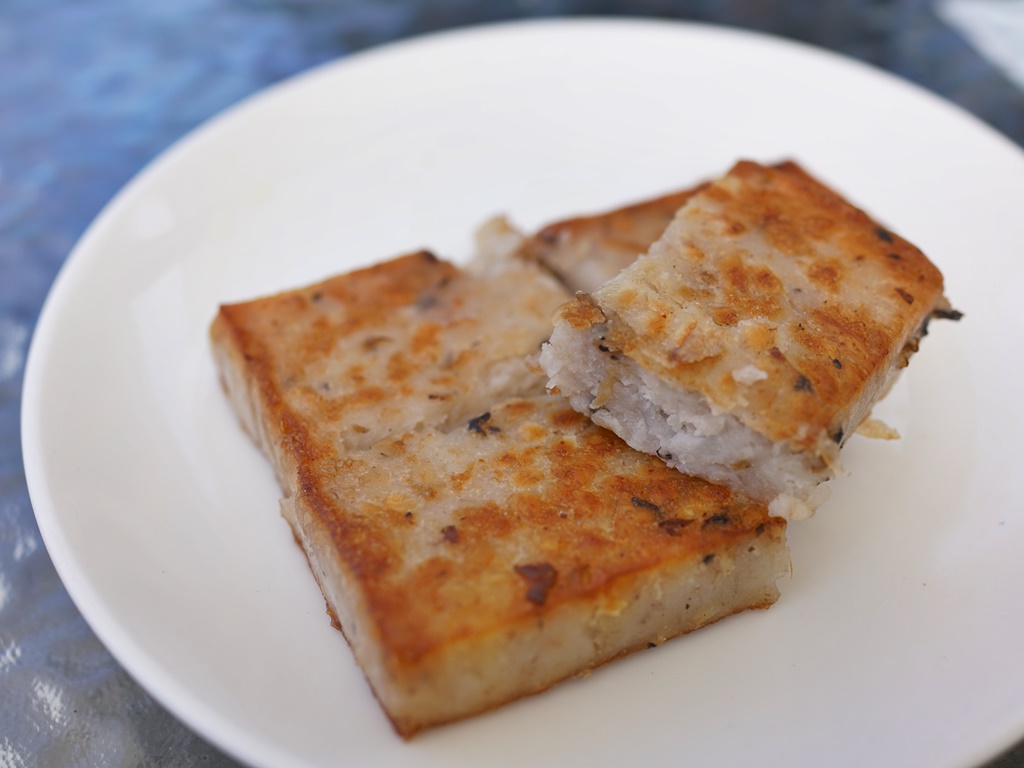我點綜合應該是會有兩片的,沒想到我只是去買個麵包回來就被吃了一片,所以我沒吃到也沒拍到蘿蔔糕…後來要加點老闆娘說沒辦法,因為人潮太多不接受加單,好想哭啊我只吃到芋頭糕,芋頭香氣非常夠,”據說”蘿蔔糕也好吃,雖然店家是以傳統方式製作,並先蒸後煎感覺很費工,但一份只有兩片要價60元還是有點小貴齁~