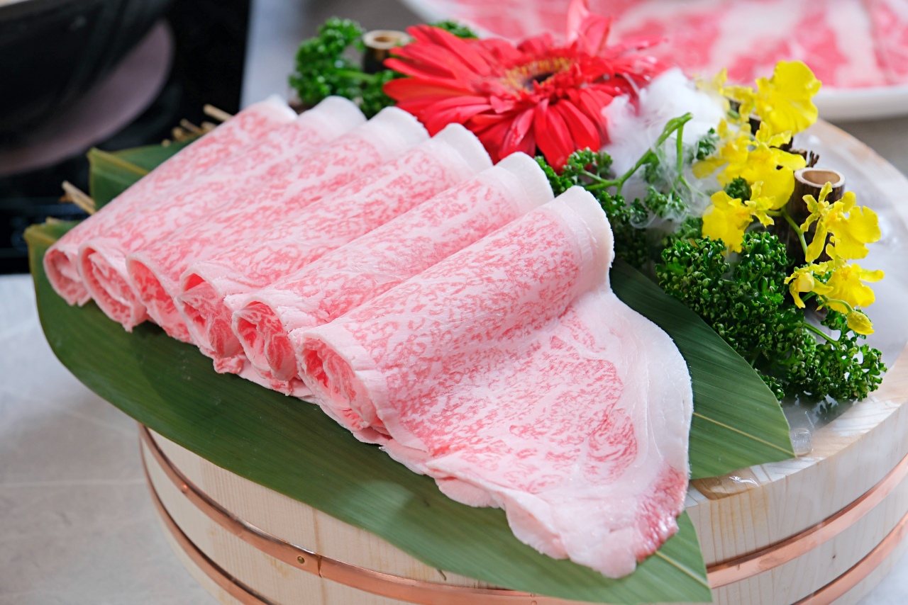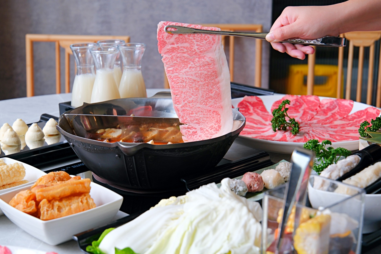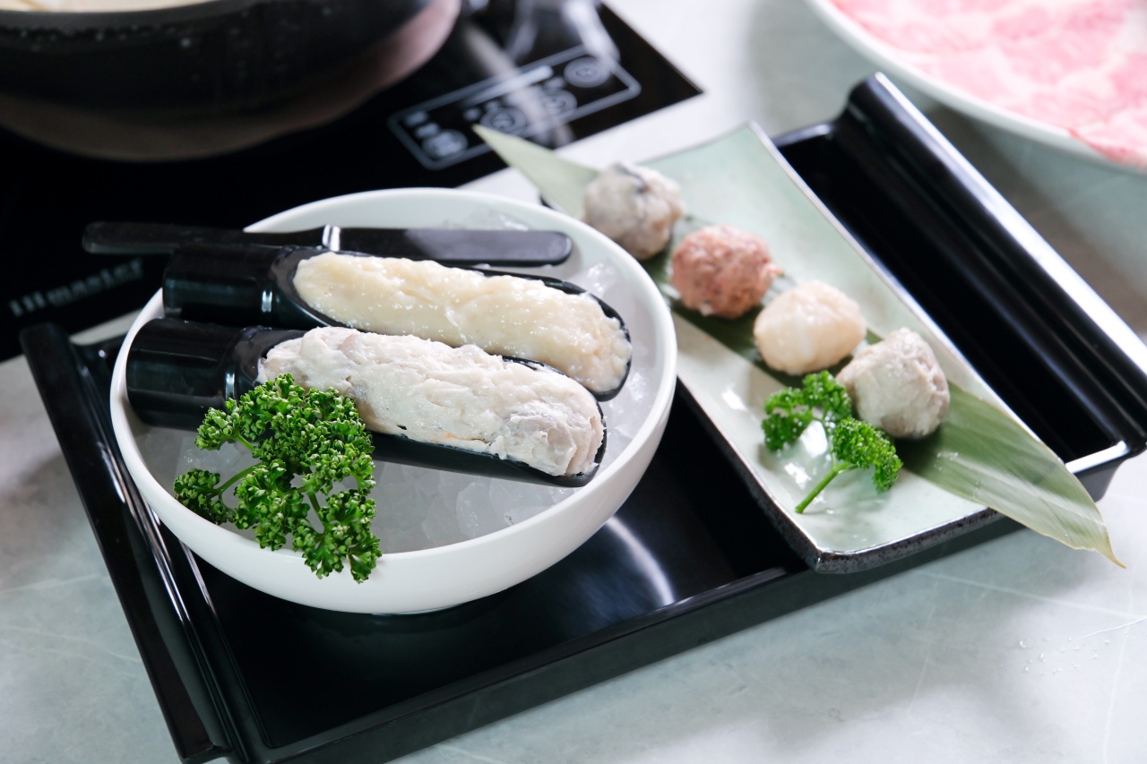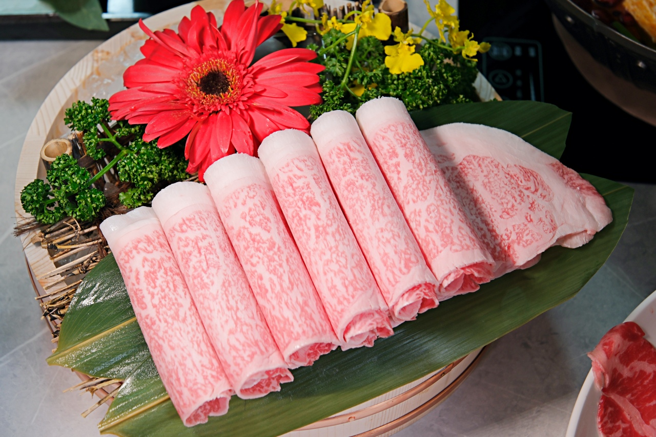 尼看看這個帶著粉紅色澤、油花均勻分布的大器牛肉,是不是光看就流口水啦!信義店獨家的「日本A5和牛極上紐約客」,是這家店獨家供應的每日限量菜色。以講究的8秒涮和牛為最佳的美味吃法,在湯底滾的時候,把肉片在熱湯裡轉上8秒就能入口,肉片呈現粉紅偏白的狀態就是最美味的時刻。和牛肉略帶點厚度,吃起來軟嫩油脂飽滿,肉的香氣在嘴裡綻放著,愛吃和牛的饕客不能錯過。