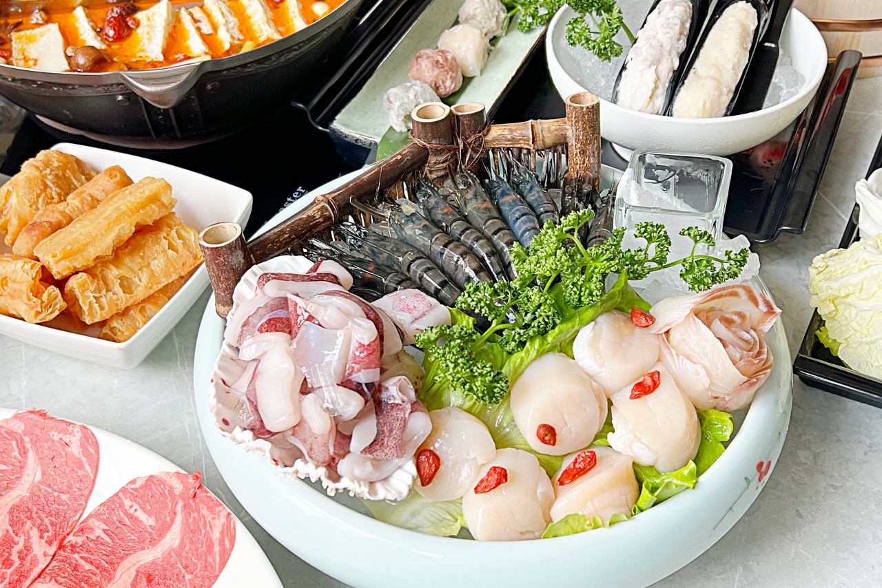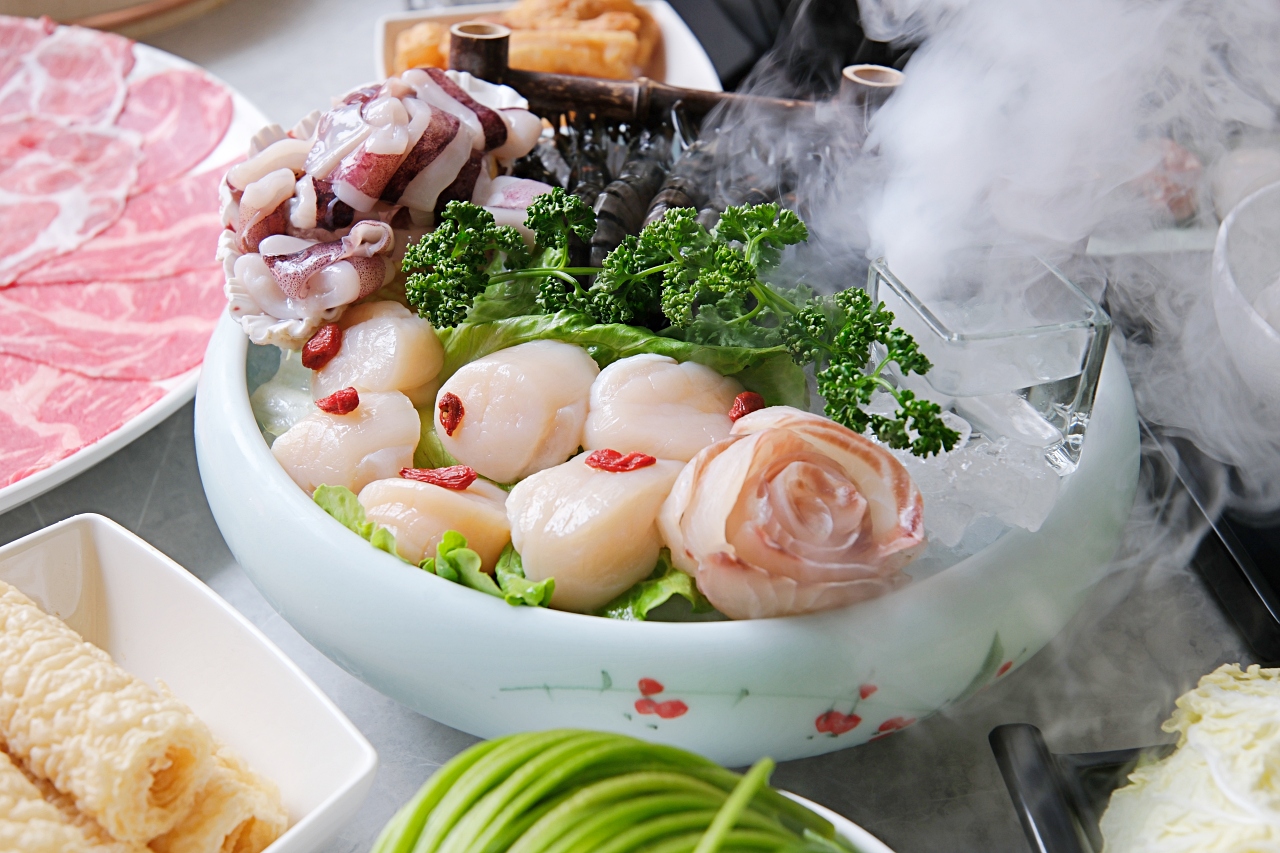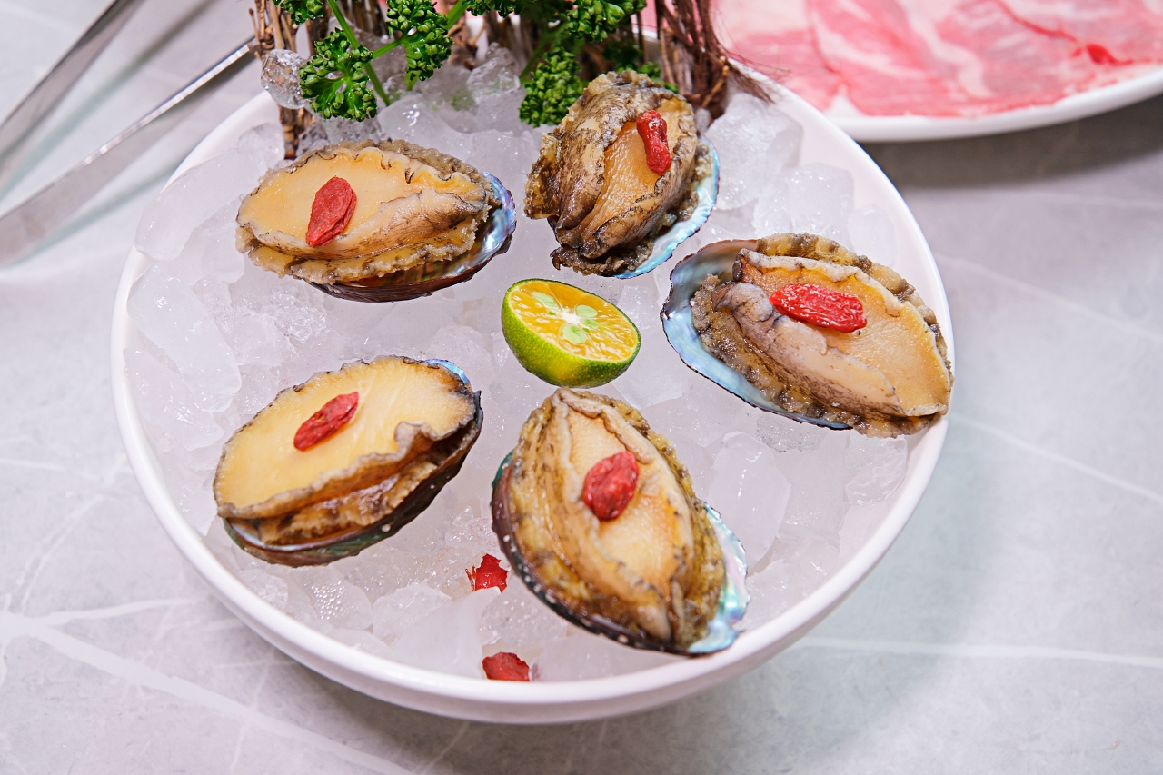 很少在火鍋店看見的帶殼鮑魚,讓我們眼睛為之一亮。出餐的時候已經貼心的把殼跟肉分離,只要把肉輕輕夾起放進鍋裡煮熟就行了,鮑魚的口感Q彈,肉質細膩鮮甜。