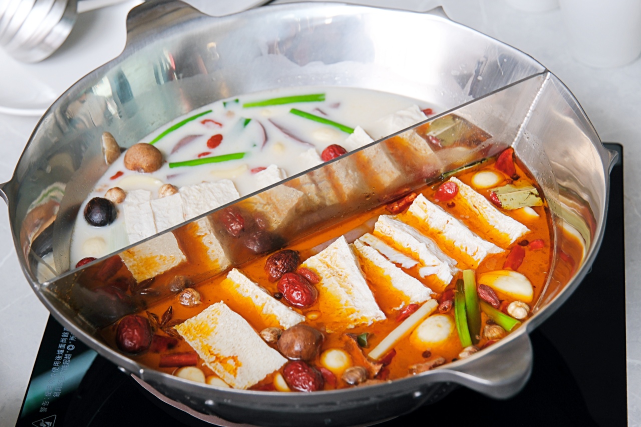 絕對是全台獨一無二的「冰淇淋豆腐鍋」,湯頭是用雞骨、豬骨、蔬菜、多種中藥香辛料熬製,乳白色的色澤看起來就是濃醇香,是無老鍋招牌湯底,加入冰淇淋豆腐,絕對是完美吃法。