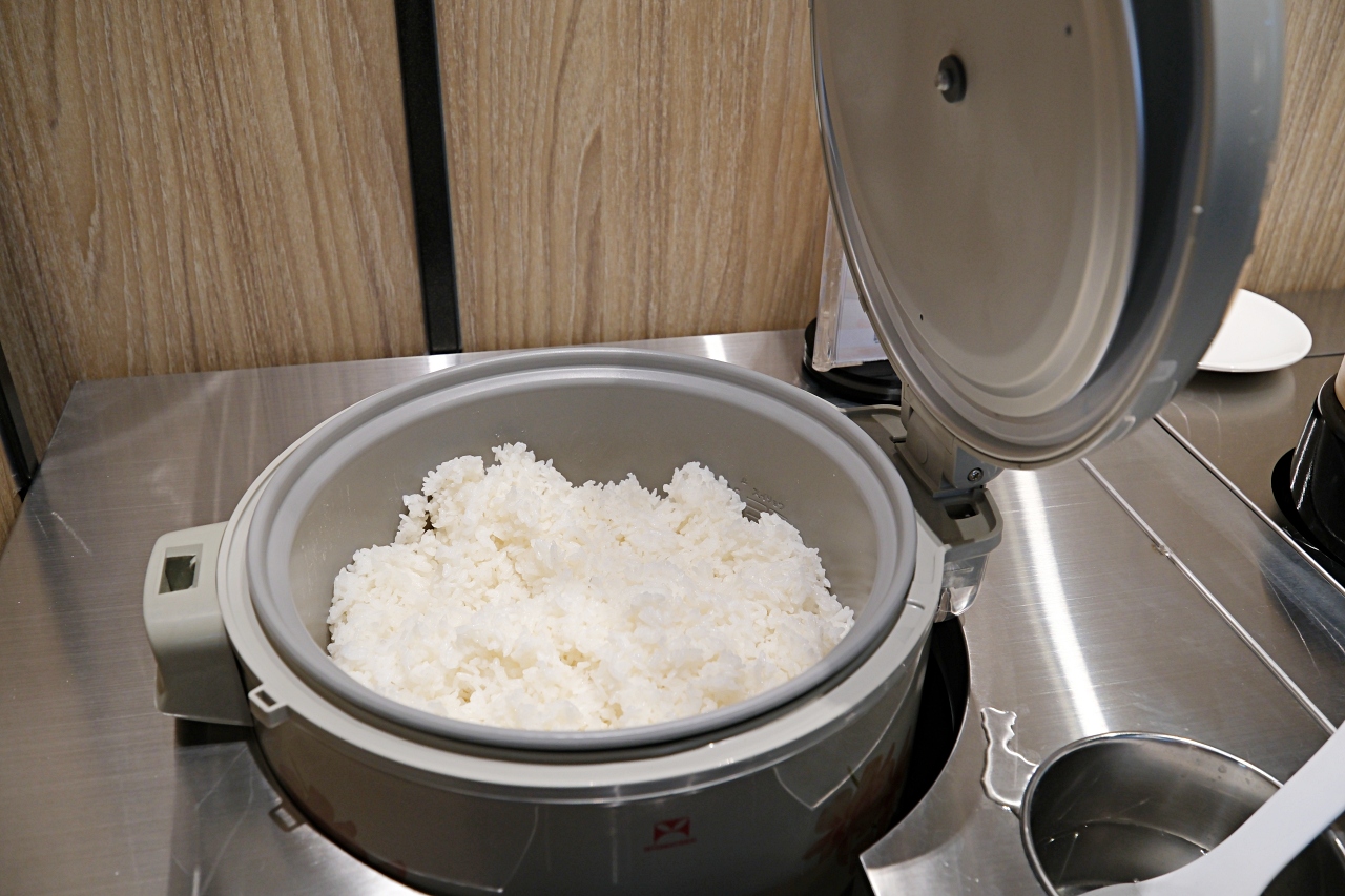 ▲自助式醬料台提供特調醬油、蔥花、蒜泥…等等,強烈推薦這個米飯!口感Q彈粒粒分明,米香十足,很容易連吃三碗。