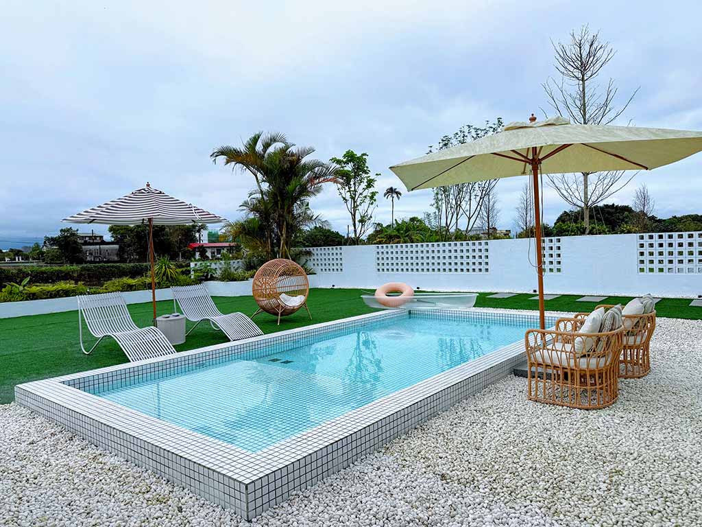 ©V妞的旅行 位於宜蘭三星鄉田野間的「17 House」外觀設計走簡約米白色調,與周邊翠綠的稻田景緻相映成